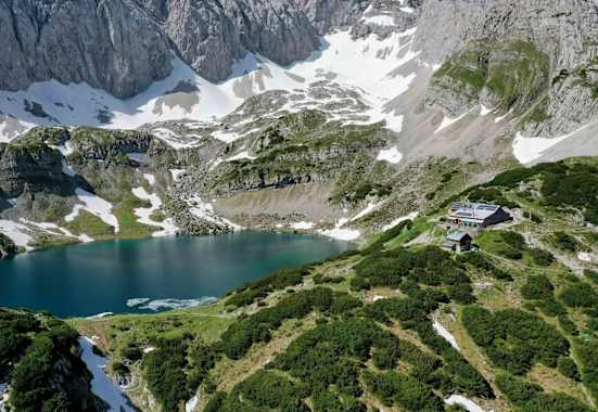 Zwischen Bergseen und Felsflanken gelegen bietet die Coburger Hütte bei Ehrwald in Tirol nicht nur ein Postkartenpanorama – ihre Gäste werden auch noch mit herzhaften Schmankerln verköstigt. Zwei nahe Klettergärten und jede Menge Möglichkeiten für Wanderer und Bergsteiger lassen die Kalorien dann wieder purzeln.