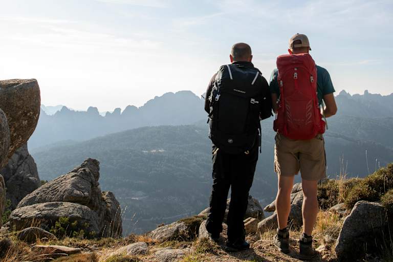 Der GR20 ist einer der schönsten Weitwanderwege Europas. Korsikas Berge sind wild: im Norden alpin und felsig, im Süden durchsetzt mit bizarren Granitformationen. Immer wieder eröffnen sich Blicke auf das Meer.