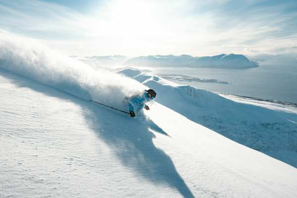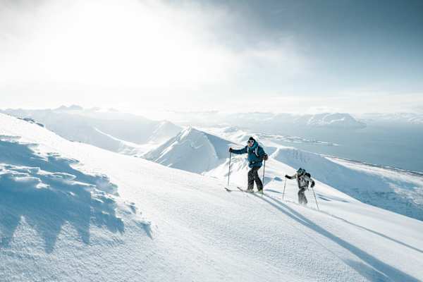 Die Lyngen-Alpen, etwa 40 Kilometer östlich von Tromsö, sind einer der markantesten Gebirgszüge Norwegens, 350 Kilometer über dem Polarkreis. Und obwohl die höchsten Gipfel der Lyngen-Alpen nur 1.800 Meter hoch sind, sind sie ein Traumziel vieler Skitourengeher. Diese entlegene Region beherbergt eine beeindruckende wilde Schönheit, die von schroffen Bergen, Gletschern und tiefen Fjorden geprägt ist. Ein Paradies für Alpinisten und Skitourengeher und Heimat der Samen, das ursprüngliche Volk des Nordens.
