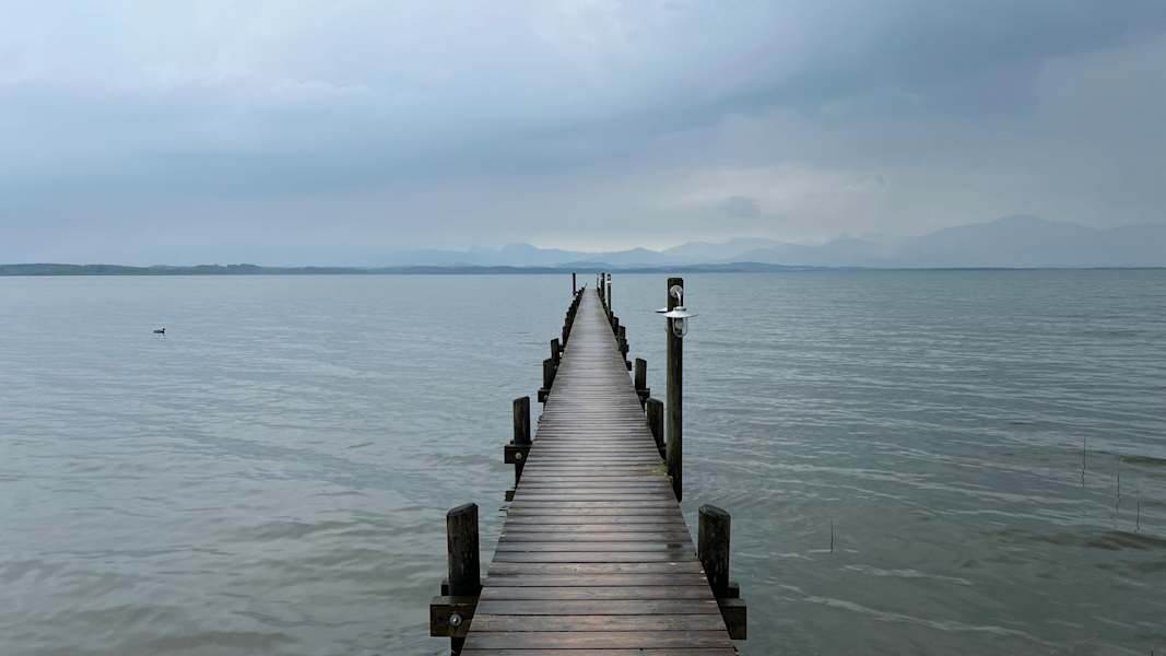 Über Chieming radeln wir weiter zum Nordufer des Sees, die Route verläuft abwechselnd durch kleine Wälder, idyllische Ortschaften und geschotterte Feldwege. Am Norden des Sees genießen wir den uneingeschränkten Ausblick auf das „bayrische Meer“, wie der Chiemsee oft genannt wird. Und ja, an diesem Tag gleicht er wirklich einer stürmischen See, mit den wilden Wellen, die er hier schlägt.