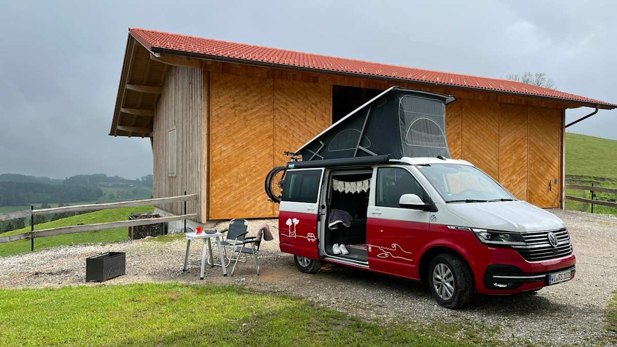 Unseren nächsten Stellplatz haben wir über die Roadsurfer Spots App gefunden. Hier können Privatpersonen ihren Grund als Stellplatz zur Verfügung stellen. Familie Tischner macht auf dem Auer-Hof am Samerberg genau das – und so wie man von den Gastgebern Hansi und Theresa empfangen wird, fühlt man sich hier auch gleich zuhause.