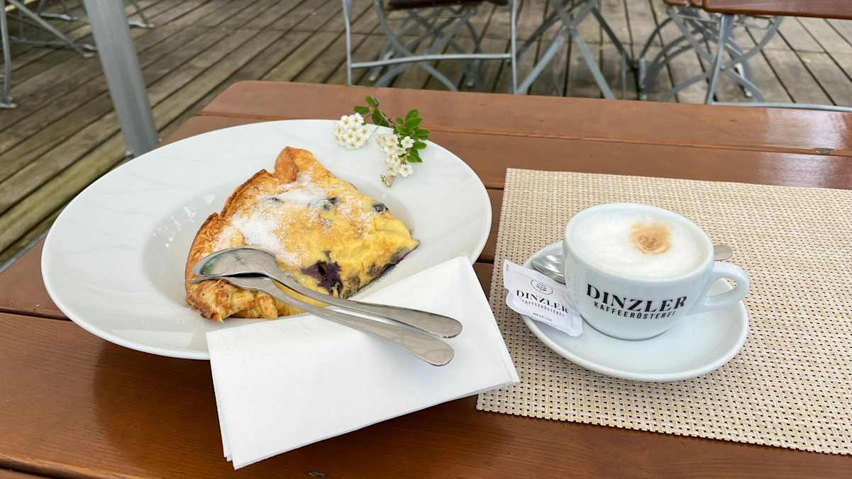 Direkt im Landschaftsschutzgebiet im Süden des Chiemsees gelegen, ist das Wirtshaus zur Hirschauer Bucht die ideale Wahl für eine Kaffeepause. Die Kaffeebohnen werden von der regionalen Rösterei Dinzler bezogen. Besonders empfehlenswert sind die Süßspeisen: Wir haben uns für einen Heidelbeerschmarrn entschieden. Das Wirthaus ist aber auch für die fangfrischen Chiemseefische bekannt.