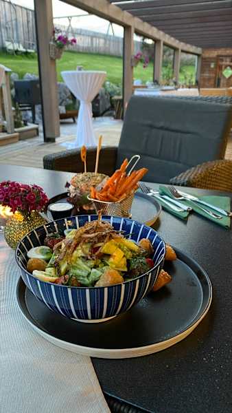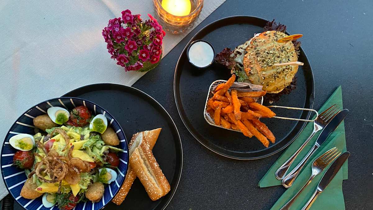 An unserem letzten Abend stoßen wir auf der Sonnenterasse der Rockbar St. Johann mit Almhugo auf unseren erfolgreichen Vantrip an. Der Name des Lokals leitet sich nicht wie vermutet vom gespielten Musikstil ab, sondern ist eine Anlehnung an die Felsen des nahegelegenen Kaisergebirges. Kulinarisch hat das Restaurant, das architektonisch an ein kanadisches Blockhaus erinnert, einiges zu bieten: Küchenchefin Michelle ist gebürtige Brasilianerin und verbindet auf der Speisekarte klassische Tiroler Hüttenküche mit südamerikanischen Gerichten. Außerdem gibt es hausgemachte Ripperl und kreative Burgervariationen. Wir entscheiden uns für das brasilianische Vorspeisentrio, den Brasilian Burger mit Rindfleisch und Jalapeño-Sauce sowie den wahlweise vegetarisch erhältlichen La Guapa Salat, der mit gebackenen Käsebällchen, Mangos und Chili serviert wird.