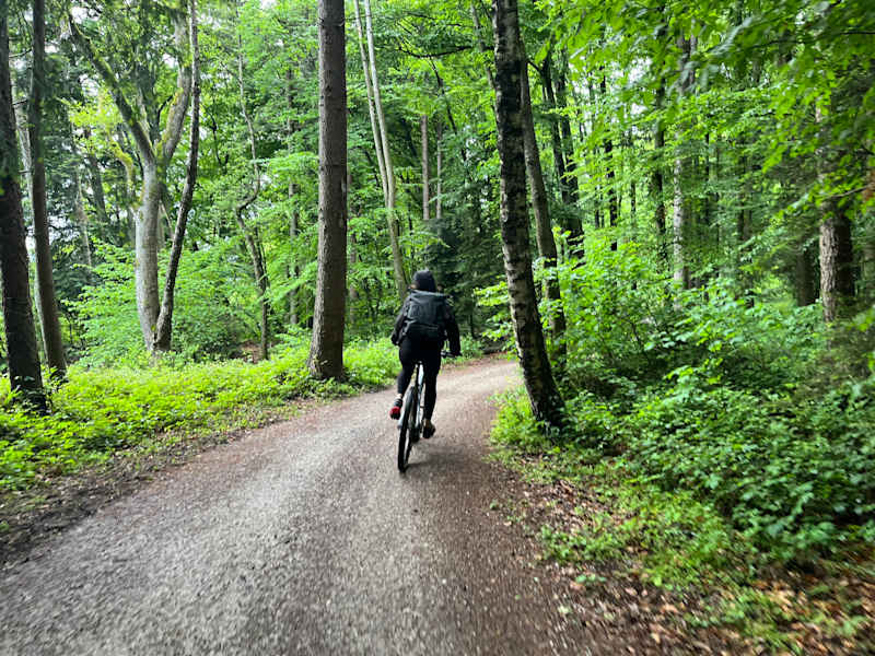 Was wir an diesem Punkt außerdem bestätigen können: Die Chiemsee-Radrundfahrt eignet sich hervorragend als Schlechtwetterprogramm. Erstens ist bei Regen hier fast nichts los – was ansonsten recht selten vorkommt – und zweitens stört die nasse Fahrbahn bei der flachverlaufenden Strecke kaum. Was aber bestimmt auch eine wichtige Rolle spielt: Die Temperatur liegt an diesem Tag bei angenehmen 20 Grad plus und wir tragen gute Regenkleidung.