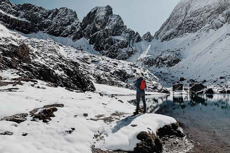 Schon die Dolomitenhütte am Start, die auch gerne als „Adlerhorst“ bezeichnet wird, ist ein echtes Spektakel. Danach steuert man immer talein auf die imposanten Lienzer Dolomiten zu, vorbei an der markanten Laserzwand. Oben angekommen, lädt der kristallklare Laserzsee zu einer Rundwanderung ein, bevor man sich anschließend den kulinarischen Köstlichkeiten in der Hütte widmen kann. Das Besondere an meiner Tour: Ende September zeigte sich das Bergplateau im zauberhaften Schneekleid.