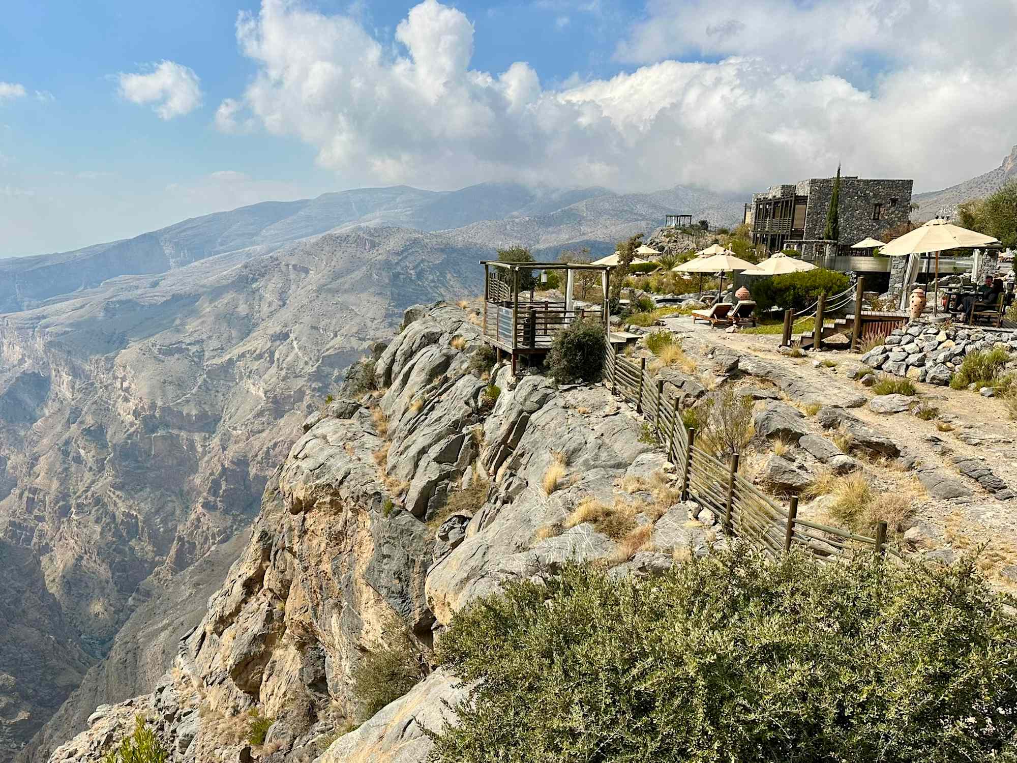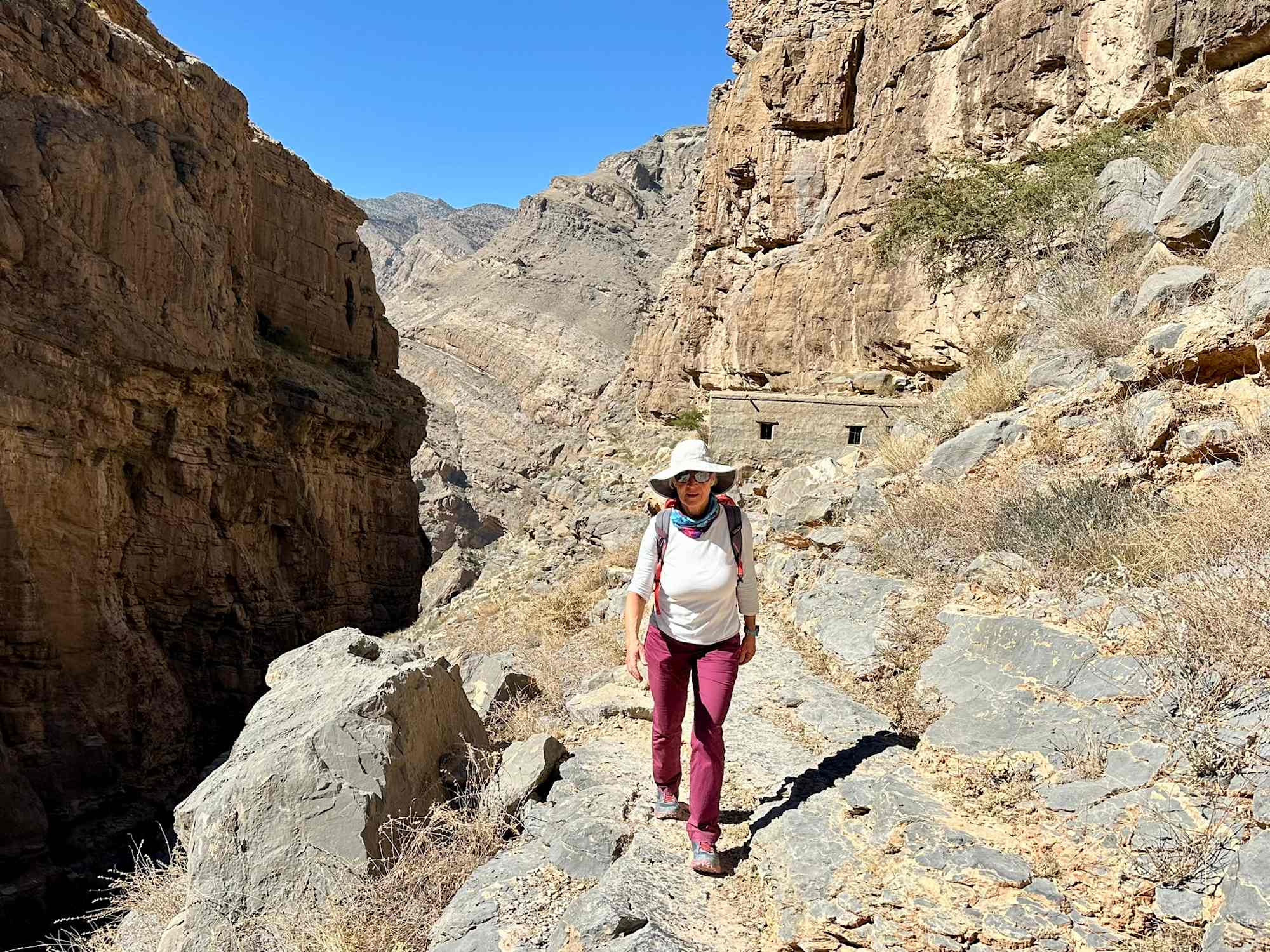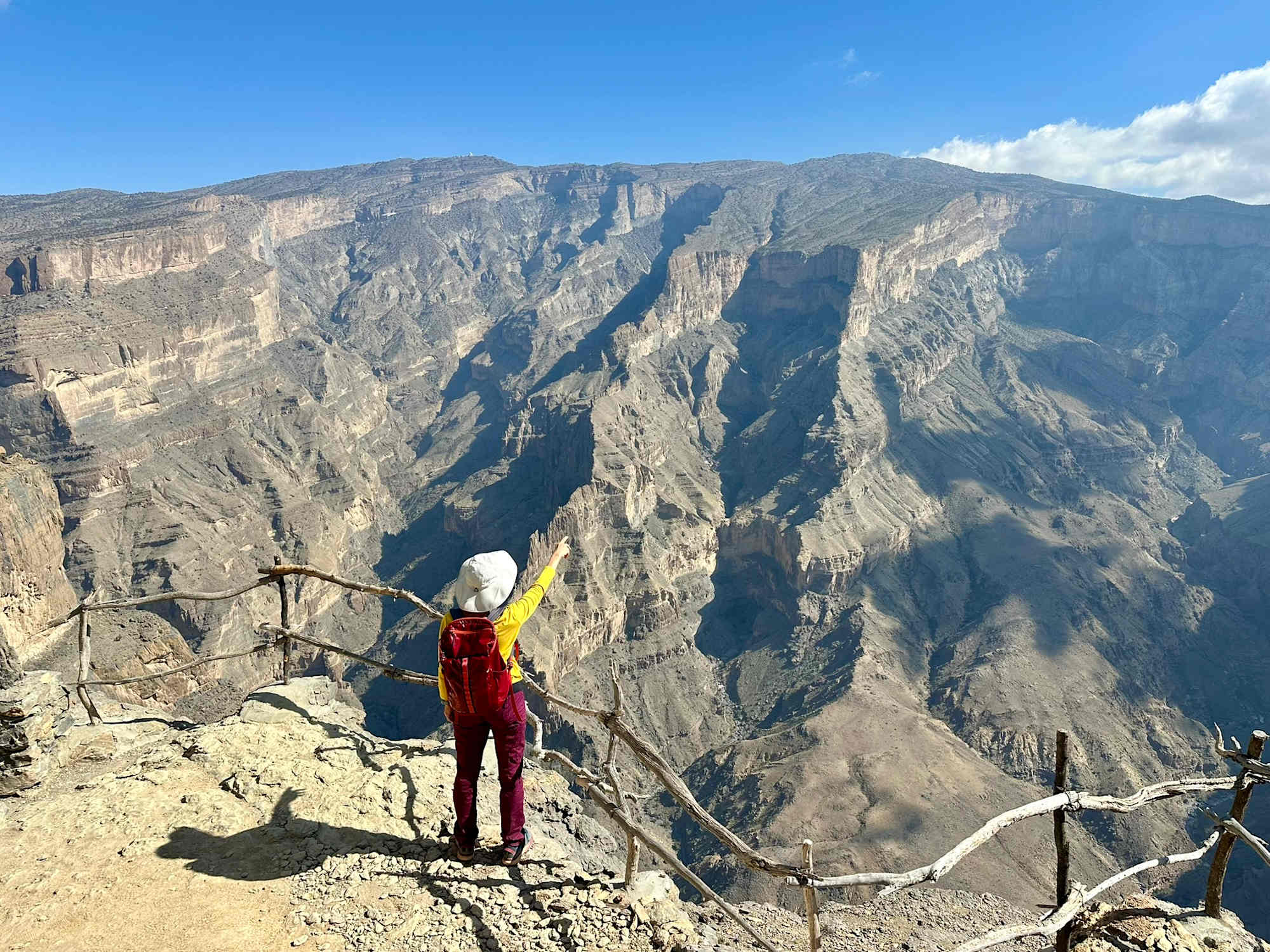 Ein paar Autostunden weiter erhebt sich der Jabal Shams – mit offiziell 3.009 Metern der höchste Berg des Landes. Der eigentliche Gipfel ist allerdings militärisches Sperrgebiet: Eine Radaranlage der omanischen Luftwaffe macht eine Besteigung unmöglich. Doch das tut dem Wandererlebnis keinen Abbruch, denn der benachbarte Nebengipfel ist nur wenige Meter niedriger – und gut erreichbar.