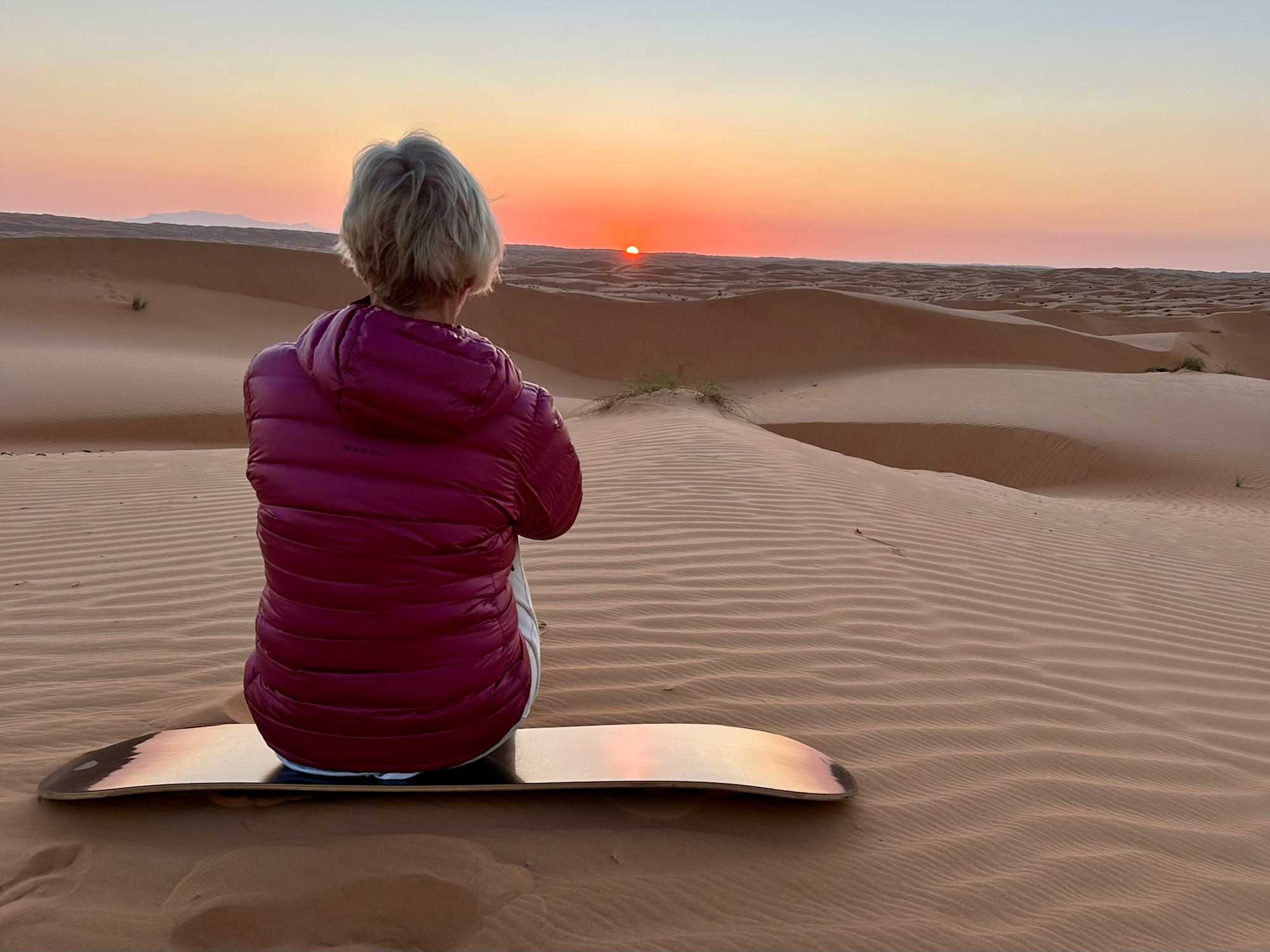 Nach dem Grün und Grau der Berge und Schluchten erwartet den Wanderer ein vollkommen anderes Bild: Die Wahiba Sands erstrecken sich südöstlich des Hadschar-Gebirges über Hunderte von Kilometer. Hier beginnt das klassische Bild der arabischen Wüste: endlose Dünen, rötlich-golden im Licht der tiefstehenden Sonne, geformt vom Wind zu immer neuen Skulpturen. Wer hier wandert, spürt die Weite, das Licht und den weichen Sand unter den bloßen Füßen. Übernachtet wird stilvoll im Camp des Canvas Club: Glamping unter dem unbeschreiblich klaren Sternenhimmel. Sonnenauf- und -untergänge sind hier nicht nur schön, sondern nahezu spirituell – Momente, die man nicht vergisst.