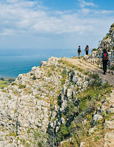 Hoch über dem See Genezareth: Die Rundwanderung führt aus dem Tal bei Hamam hinauf auf das markante Kalkmassiv des Mount Arbel (188 m), ehe sie mit dem Abstieg durch das Taubental einen weiteren reizvollen Höhepunkt bereit hält. Mindestens genauso schön ist auch der allgegenwärtige Blick auf den knapp 400 m tiefer gelegenen See Genezareth, immerhin Israels größter Süßwassersee.