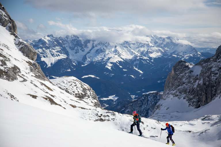 Wer im Winter im Tennengebirge unterwegs ist, muss zwei Dinge im Rucksack haben: Ausdauer und Geduld. Denn die Wege auf das „Gebirg“, wie es von seiner Anwohnern genannt wird, sind weit und verlangen einem so einiges ab. Hat man es einmal in die Höhe geschafft, befindet man sich in einer Welt, in der es alles gibt, was das an Kälte gewöhnte Abenteuerherz höherschlagen lässt: schroffe Grate, äußerst steile Skiabfahrten und schwindelerregende Felswände, die im Winter nur von erfahrenen Kletterern aufgesucht werden sollten.