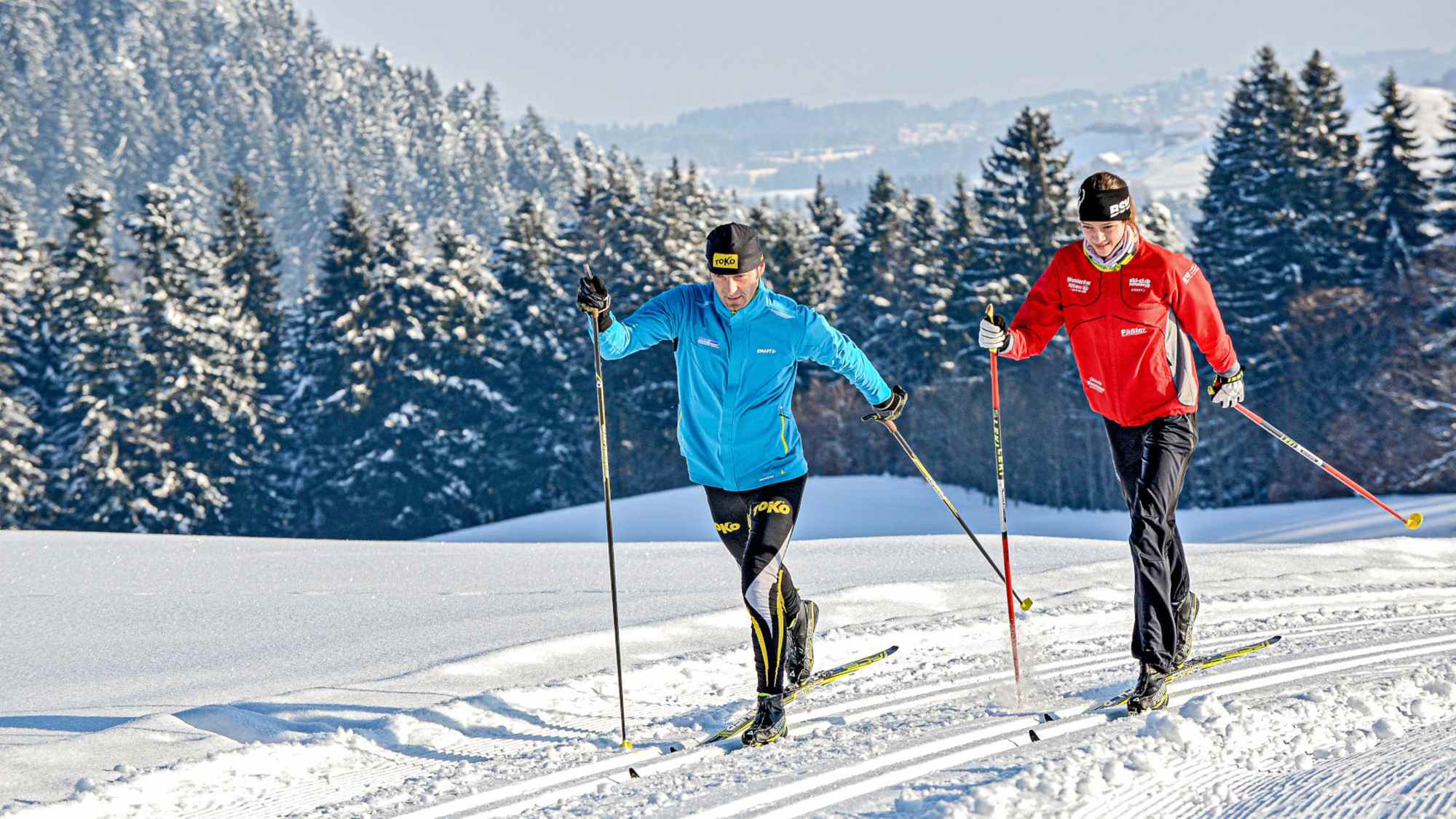 Auch Langläufer finden auf dem sonnenverwöhnten Hochplateau von Scheidegg ideale Bedingungen vor. Egal, ob gemächlich im klassischen Stil oder sportlich in der Skatingspur – hier gibt es für jedes Niveau die passende Strecke: