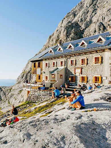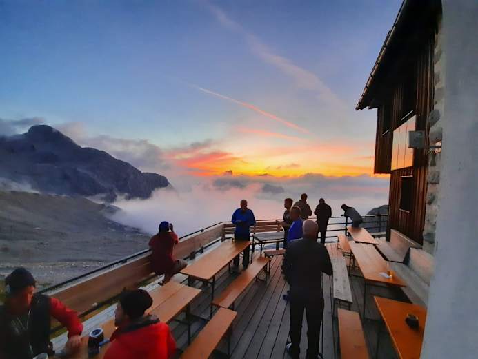 Auf der Adamekhütte haben die Gäste einen edlen Platz in der AbendsonneFoto: Julius Hirtzberger, Bergwelten Magazin 02/2021