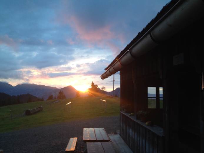 Die nächstgelegenen Hütten sind die Bregenzer Hütte auf 1.290 m, die in 30 und die Lustenauer Hütte (1.250 m) die in 40 Minuten Gehzeit zu erreichen sind.