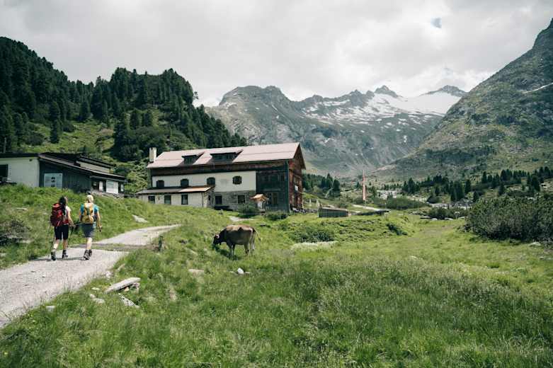 Die nächstgelegenen Hütten sind die Berliner Hütte (2.044 m) und die Grawandhütte (1.636 m), die man jeweils in 0:30 h zu Fuß erreicht.