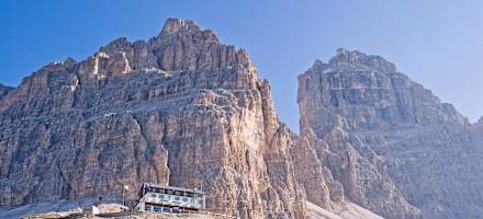 Die Auronzohütte (2.333 m) ist eine bewirtschaftete Schutzhütte in den italienischen Dolomiten der Provinz Belluno im Dolomiten UNESCO Welterbe. Sie ist über die Mautstraße „Tre Cime“ sowohl mit dem Bus als auch mit dem Pkw zu erreichen und hat von Juni bis Oktober geöffnet. Die Hütte befindet sich in der Nähe der berühmten Drei Zinnen (2.999 m) und liegt im Gebiet des Dolomitenkrieges (1915–1918). Besonders bliebt ist sie als Ausgangspunkt für zahlreiche Spazier-, Wander-, Klettersteig- und Klettertouren. Vor allem die Umrundung der Drei Zinnen ist empfehlenswert.
