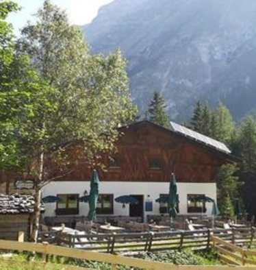 Liebevoll mit Blumen geschmückt schmiegt sich das urige Gebäude auf einer aussichtsreichen Waldlichtung in sehr steilem Gelände an die Elferspitze (2.505 m).