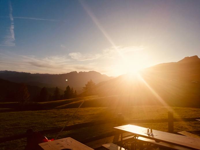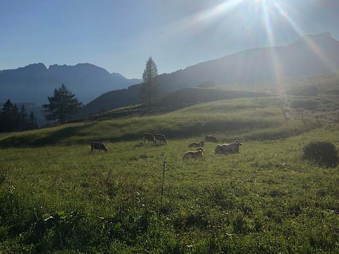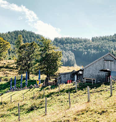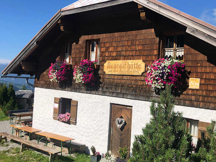 Hier steht einfache Almkost auf der Speisekarte. Verschiedene Brotzeiten – natürlich mit selbst gemachtem Brot, Käse, Wurst und Speck – Pofesen und andere Leckereien locken während der Sommermonate viele Ausflügler an.