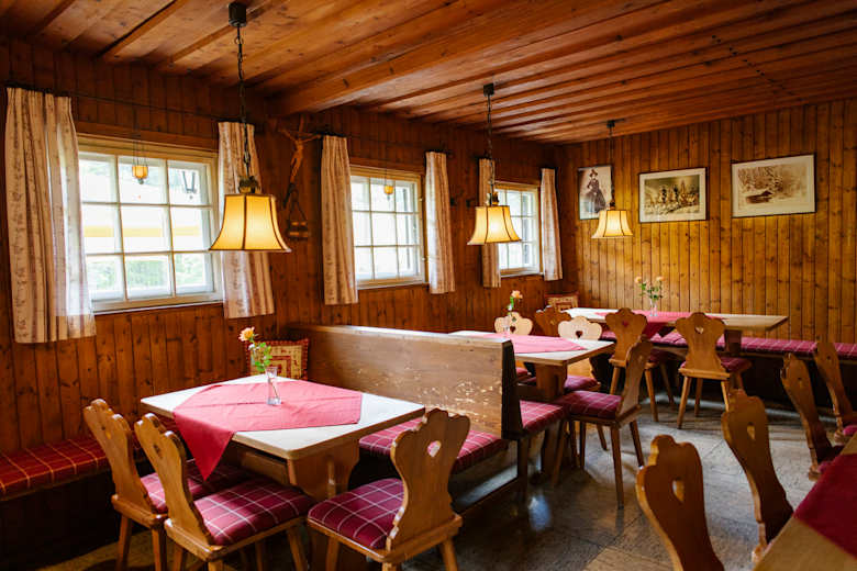 In einer kleinen Aue gelegen, mit Aussicht in den schmalen Talkessel unterhalb des Säulings (2.047 m), eignet sich die Hütte für einen kleinen Abstecher in die Natur oder als Ausgangspunkt für weitere Touren. Das Berggasthaus ist entweder mit dem Bleckenau Bus, mit der Tegelbergbahn, zu Fuß oder dem Mountainbike sehr gut erreichbar.