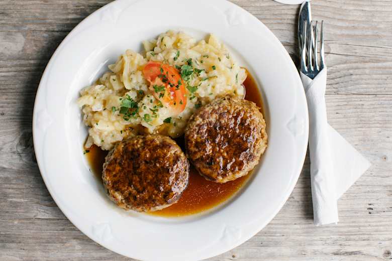 Faschierte Laibchen mit Kartoffelsalat am Bleckenhaus Foto: Elias Holzknecht