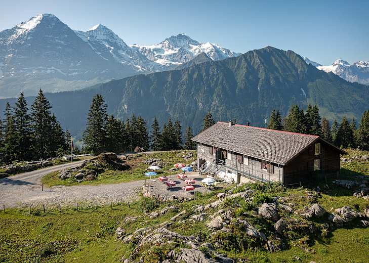 Das kleine und einfache Berghaus bietet eine sehr ursprüngliche Atmosphäre. Bei Kerzenlicht und Gaslaternen sind romantische Abendstunden garantiert. Es gibt eine grosse Sonnenterrasse mit atemberaubender Panoramasicht auf das berühmte Bergmassiv "Eiger, Mönch und Jungfrau". Bei Regenwetter bietet die gemütliche Gaststube mit Holzofen echte "heimelige" Bergromantik.