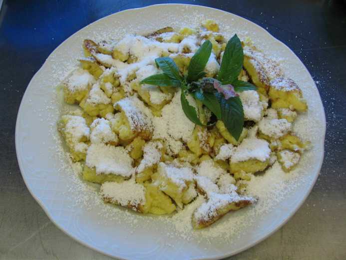 Die Küche bietet typische Tiroler Hausmannskost, aber auch vegetarische Speisen. Der Salat wird im Hausgarten angepflanzt. Beliebt sind Ripperln und Schweinshaxen, die aber vorbestellt werden müssen. Die Gäste können in der Zirbenstube mit Kachelofen oder im Almstüberl sitzen – das eigentliche Restaurant befindet sich im Wintergarten mit traumhaftem Ausblick auf die Zillertaler Bergwelt. Zusätzlich gibt es zwei große Speisesäle für große Gruppen, Familienfeiern oder Veranstaltungen im Haus.