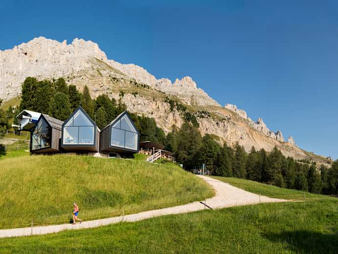 Moderne Architektur in prächtiger Bergkulisse zeigt die Berghütte Oberholz zu Füßen der eindrucksvollen Felsenkette des Latemar. Neben feiner Südtiroler Küche bieten sich hier fantastische Ausblicke. In der sanften Landschaft der Eggentaler Almen bietet die Berghütte Oberholz den perfekten Ausgangspunkt für die Erkundung des Latemarium, einer naturnah und fantasievoll gestalteten alpinen Erlebniswelt im Südtiroler Eggental.