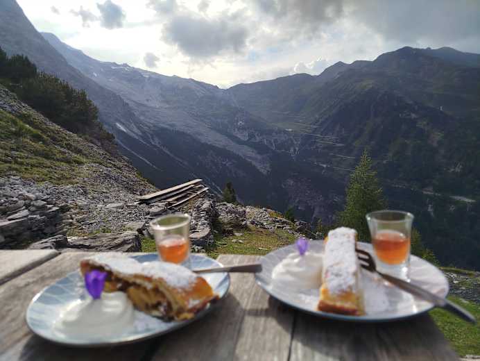 Die kleine Berglhütte ist einfach und zweckmäßig und spiegelt die Demut wider, die einen angesichts des Nordgesichts des Ortlers, dem König der Ostalpen, unweigerlich befällt. Deshalb kann man mit der regionalen und vielseitigen Küche, die Hüttenwirt Johann Mazagg bietet, recht zufrieden sein. Bekanntlich wird man zufriedener und anspruchsloser je höher man steigt.