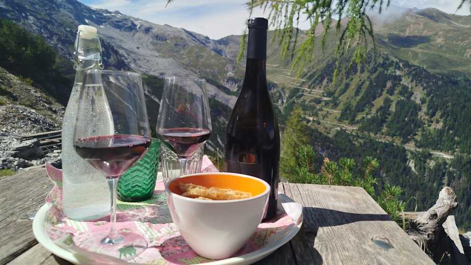 Mittagessen mit Wein auf der BerglhütteFoto: Hiltrud Jocham