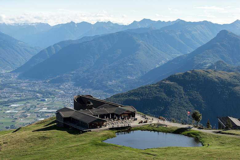 Panoramablick aufs Tessin vom Bergrestaurant Alpe Foppa.Foto: Thomas Hablützel, Bergwelten Magazin Schweiz, 04/2018