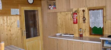 Die Hütte verfügt über Strom und eine Heizung, Wasser gibt es allerdings keines, daher auch nur ein Plumpsklo. Das Wasser muss in Kanistern vom Wirtshaus geholt werden. Eine Kochstelle ist vorhanden, ein Griller und Geschirr ebenfalls. Der Schlüssel zur Hütte wird von Hüttenbetreiber Alfred Grimm persönlich bei der Ankunft übergeben. Voranmeldung ist also nötig. Nächtigenden sind nur mit Schlafsack erlaubt. Übernachtungen mit Hunden sind gestattet, Handyempfang ist nicht gegeben.