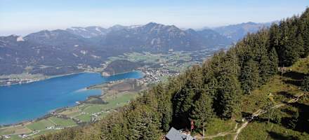 Von Gschwendt, einem Vorort von Strobl am Wolfgangsee, fährt man über die Mautstraße zum Parkplatz Bleckwandhütte auf 1.200 m. Von hier aus geht’s nun relativ eben und dementsprechend familienfreundlich in einer knappen halben Stunde teils durch den Wald, teils über Wiesen zum Ziel.