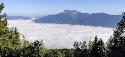 Die nächstgelegenen Hütten sind die Illighütte (1.200 m, 20 min), die Moosegghütte (1.299 m, 1 – 1:15 h) und die Strobler Hütte (1.250 m, 1 – 1:30 h).