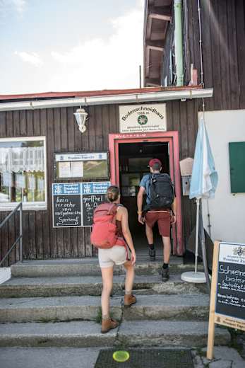 Am Ende der Straße befindet sich ein Wanderparkplatz. Von dort der Beschilderung zum Bodenschneidhaus folgen.