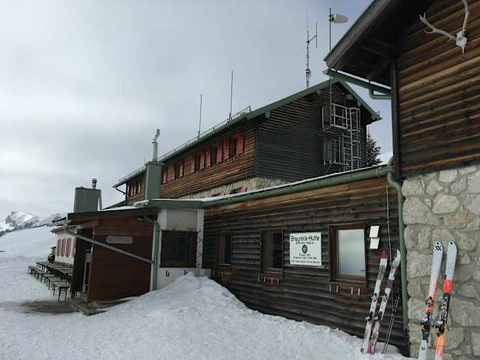Das Brauneck-Gipfelhaus wurde 1930 gebaut und ab 1996 stückweise renoviert. Es entspricht modernsten Anforderungen – die urige Gemütlichkeit einer Schutzhütte ist dabei ein klein wenig verloren gegangen. In der neuen Gaststube mit Kachelofen finden 100 Personen Platz. Gleich daneben befindet sich die Küche – man kann zuschauen, wie Kaiserschmarren, Sau am Spieß und andere Köstlichkeiten zubereitet werden.