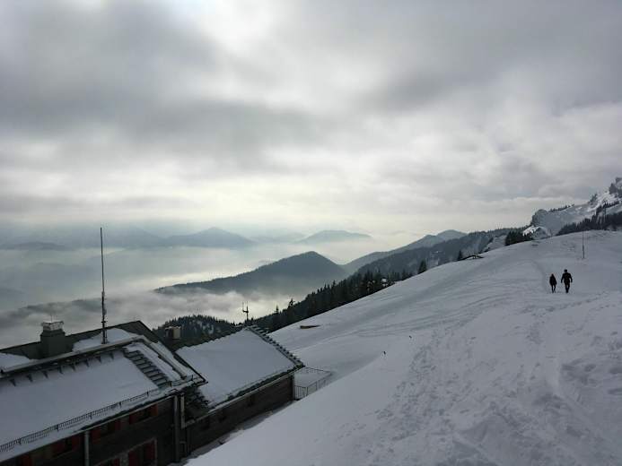 Das dreistöckige Gebäude hat eine riesige südseitige Terrasse von der sich Wanderern, Tagesausflüglern, Schneeschuhwanderern und Skifahrern ein toller Ausblick bietet. Man blickt von hier auf die Tegernseer Berge, das Karwendelgebirge und das Wettersteingebirge. Vom Gipfel aus schaut man zum Heigelkopf und Zwieselberg. Bei guter Fernsicht kann man Bad Tölz, München und den Starnberger See erkennen.