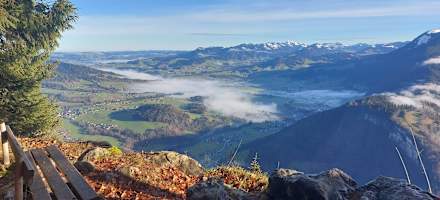 Alternative Routen: von Bödele (1.153 m, 1:30 h); von Dornbirn (448 m, über Kehlegg und Gschwendt, 2:30)