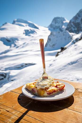 Kuchen mit Aussicht auf der Britannia HütteFoto: Saastal Tourismus AG