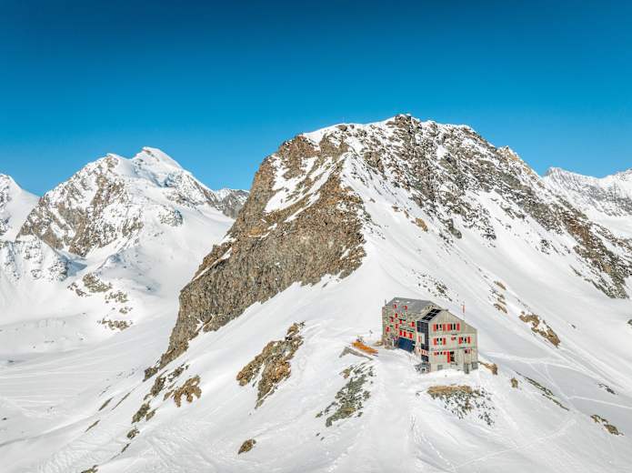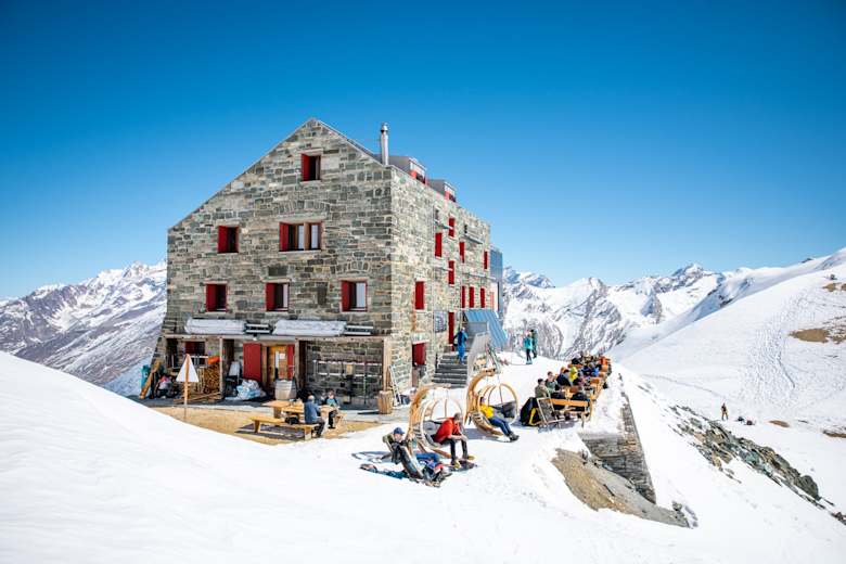 Im Winter ist die Hütte über eine Pistenraupenspur vom Skigebiet Saas-Fee in nur 15 Minuten zu erreichen und sie ist zugleich Ausgangspunkt für die berühmte Haute Route in den Schweizer Alpen.
