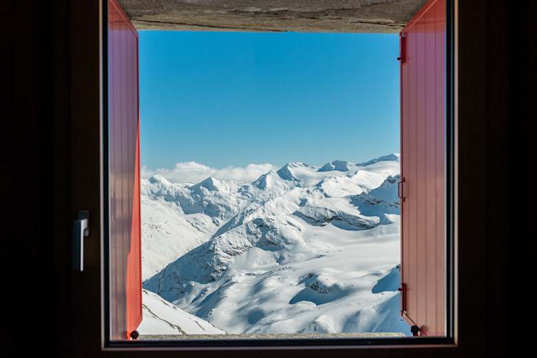 Blick aus dem Fenster der Britannia Hütte im WallisFoto: David Birri / Red Bull Media House Publishing