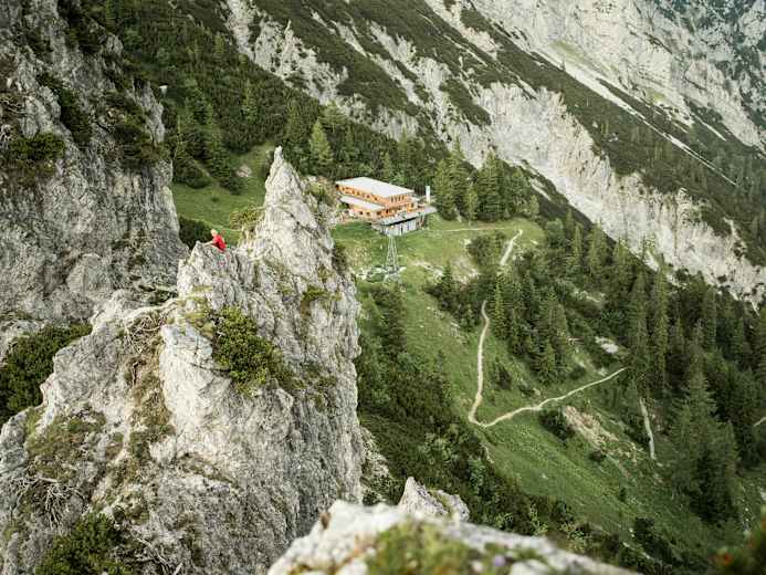 Das Buchsteinhaus lädt zum Verweilen ein. Foto: Andrea Kopitsch Bergwelten Hüttenreporter 072022 Bildergalerie (4) Karte ansehen