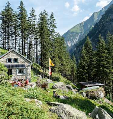 Auf 1.882 Metern wird man hier zur Stärkung eingeladen. Foto: Thomas Hablützel, Bergwelten Magazin Schweiz 04/2018