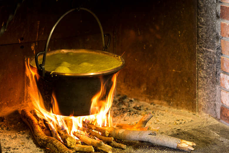 Polenta ist ein Tessiner Grund nahrungsmittel. In der Capanna Tamaro wird es auf offenem Feuer zubereitet. Foto: Thomas Hablützel, Bergwelten Magazin Schweiz 04/2018