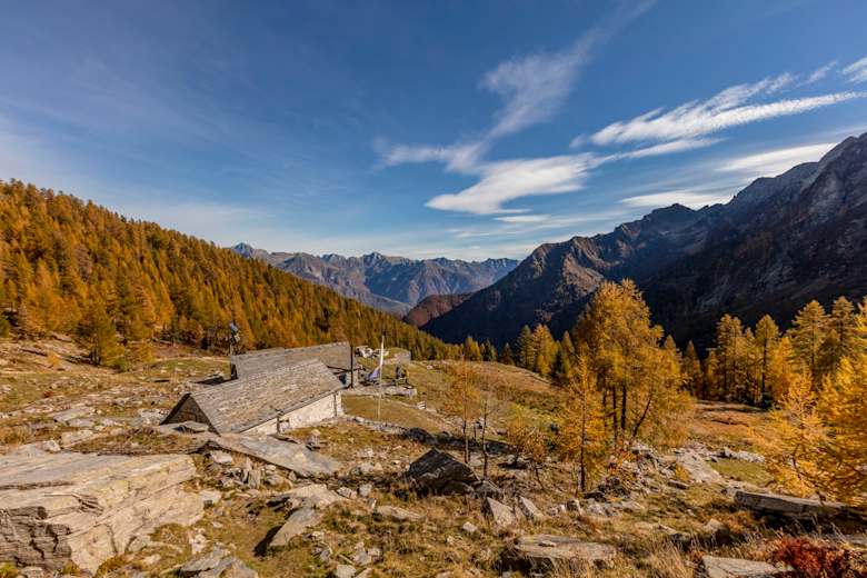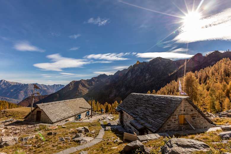 Zur Capanna Grossalp (1.900 m) via Bocchetta di Cansgei (2.036 m), Collinasca (780 m), Cimalmotto (1.405 m), (autopostale) Passo Quadrella (2.137 m), 8 h