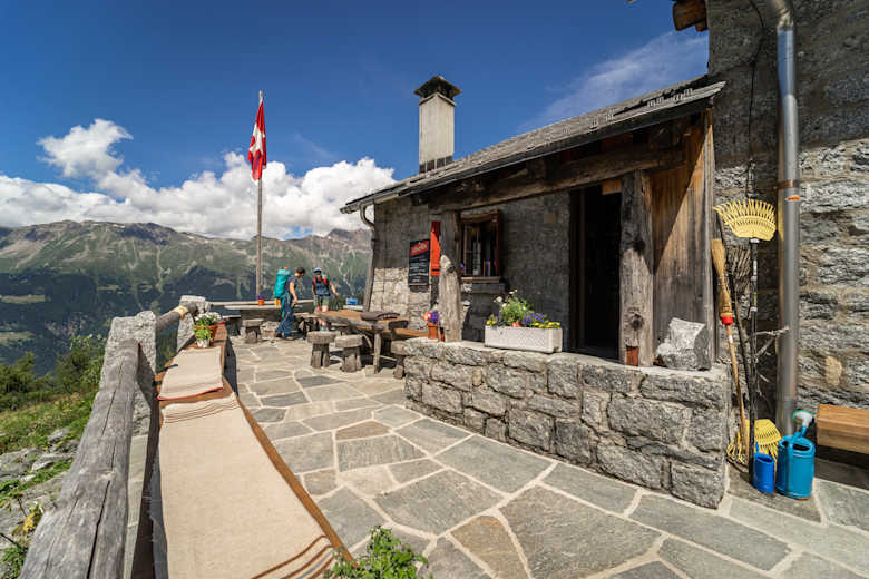 Die Hütte liegt zauberhaft auf einer Lichtung im Lärchenwald. Aus regionalen Produkten und – sofern es die Hütteninfrastruktur zulässt – werden Frischprodukte zu traditionellen Speisen für hungrige Alpinisten zubereitet: Rösti-Variationen, hausgemachte Bündner Gerstensuppe, Bergeller Marenda und mehr, dazu ein Gläschen Blauburgunder aus der Bündner Herrschaft.