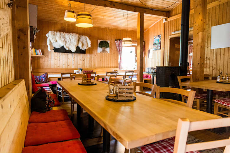 Kinder können sich um Umfeld der Hütte gefahrlos vergnügen, für die ganz Kleinen gibt’s eine Sandkiste, für die etwas größeren ein Klettergerüst. Weitere Spielmöglichkeiten sind in Planung. Eltern genießen derweil ruhige und aussichtsreiche Stunden auf der Terrasse.