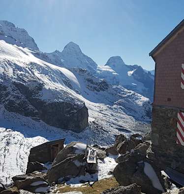Doldenhornhütte unterhalb des gleichnamigen Gipfels Foto: Pascal Schumacher // @ pazcal__