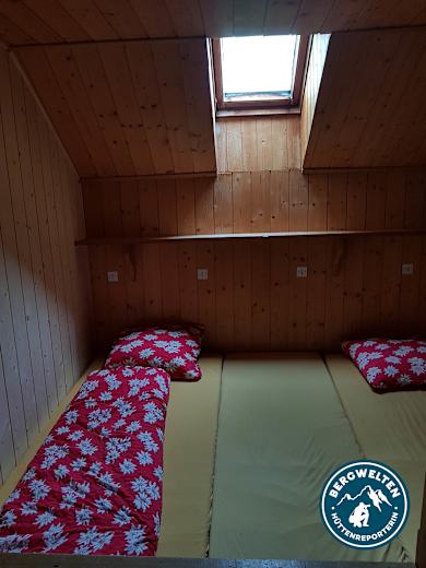 Duvets vorhanden, Reservierung online oder telefonisch, Halbpension (Abendessen, Frühstück und Marschtee), WC + Waschraum außerhalb der Hütte (Waschraum nicht im Winter nutzbar), Winterraum von Oktober bis März mit 10 Plätzen und Gaskocher