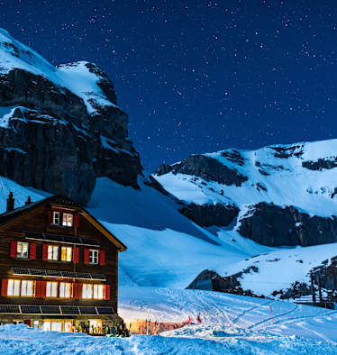 Die aus Stein gebaute Domhütte ist ein komfortables Refugium.Foto: Nico Schärer, Bergwelten Magazin Schweiz 04-2020
