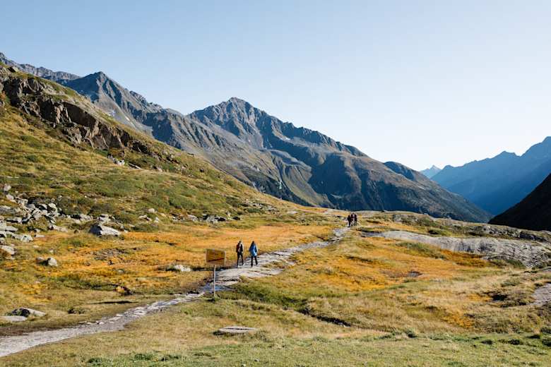 Am aller kürzesten ist die Fahrt mit der Gletscherbahn bis zur Mittelstation Fernau. Von hier sind es zu Fuß nur fünf Minuten.