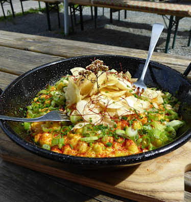 Die E.T-Compton-Hütte stand und steht immer noch für sehr gutes Essen. Die urige und familienfreundliche Hütte ist bekannt für erstklassige Wildgerichte und Hausmannskost. Und sie geht noch eine gewisse Zeit als Geheimtipp durch. Ein Kleinod ist die Hütte auf jeden Fall. Herausgeputzt, adrett und malerisch steht sie unter den Wänden des Reißkofels, macht ihrem Namensgeber alle Ehre.