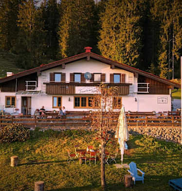 Die Eckberthütte umgeben von Wald und einem tollen BergpanoramaFoto: Andreas Brandstätter